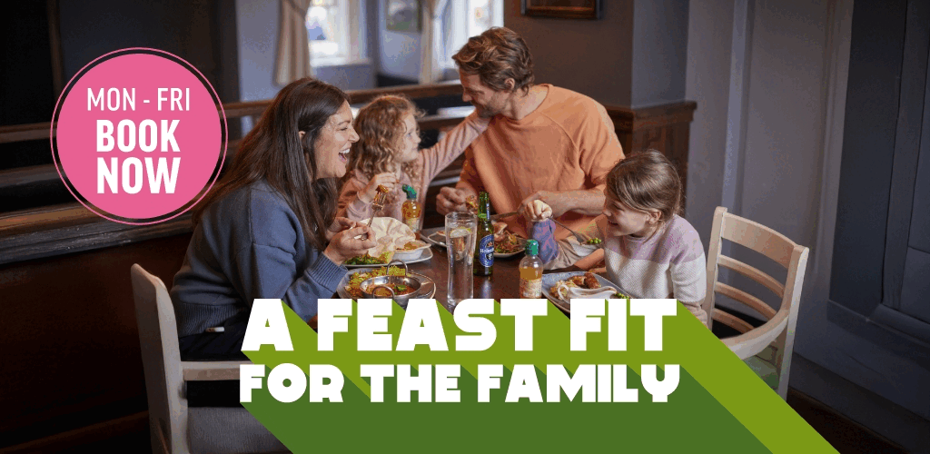 Gather the gang, bring those appetites, and get ready to feast! Our Feed the Family deal is back – bigger, better, and sweeter than ever. From 23rd - 30th May, Monday to Friday, you can enjoy a proper sit-down meal for four, plus a sharer dessert, all for just £20. That’s two adult pub classics, two kids’ meal deals, and a showstopper pud to share - because if there’s one thing we know, it’s that a great meal is even better when there’s a spoon fight over the last bite.