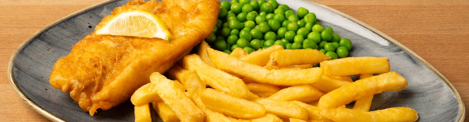When you think of the ultimate pub classic, what springs to mind? OK, here’s what we think: succulent, flaky fish wrapped in light, crispy batter. Hot, fluffy chips and sweet garden peas… or mushy peas, depends what mood we’re in. If you've been searching for fish & chips near you, look no further. We've got just the ticket.