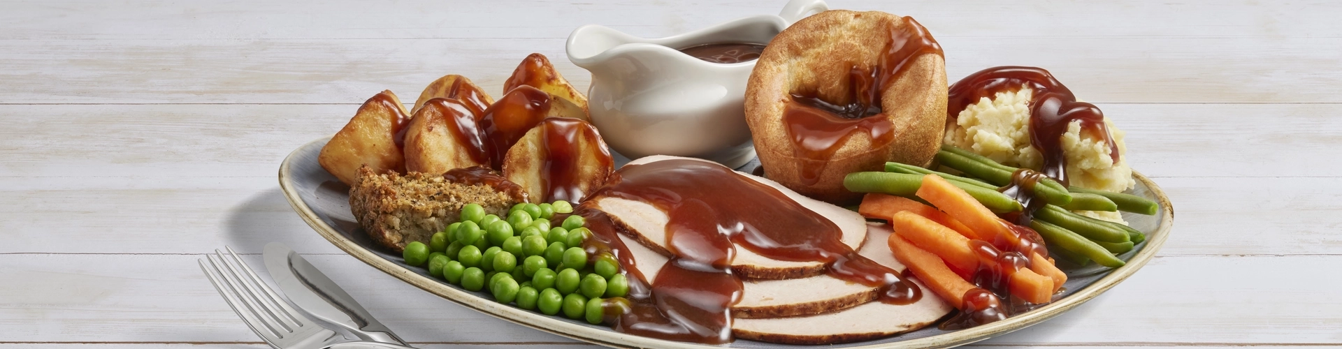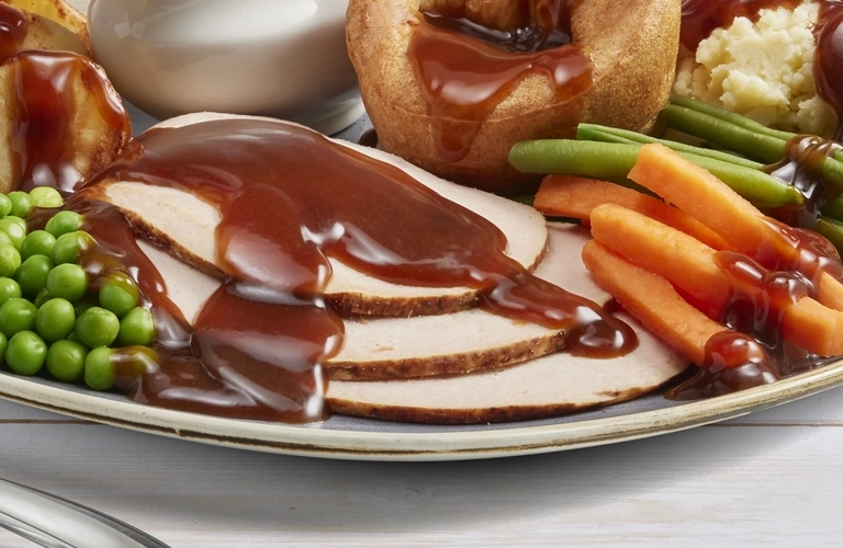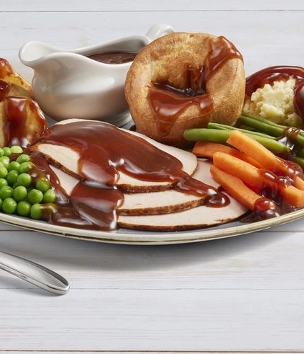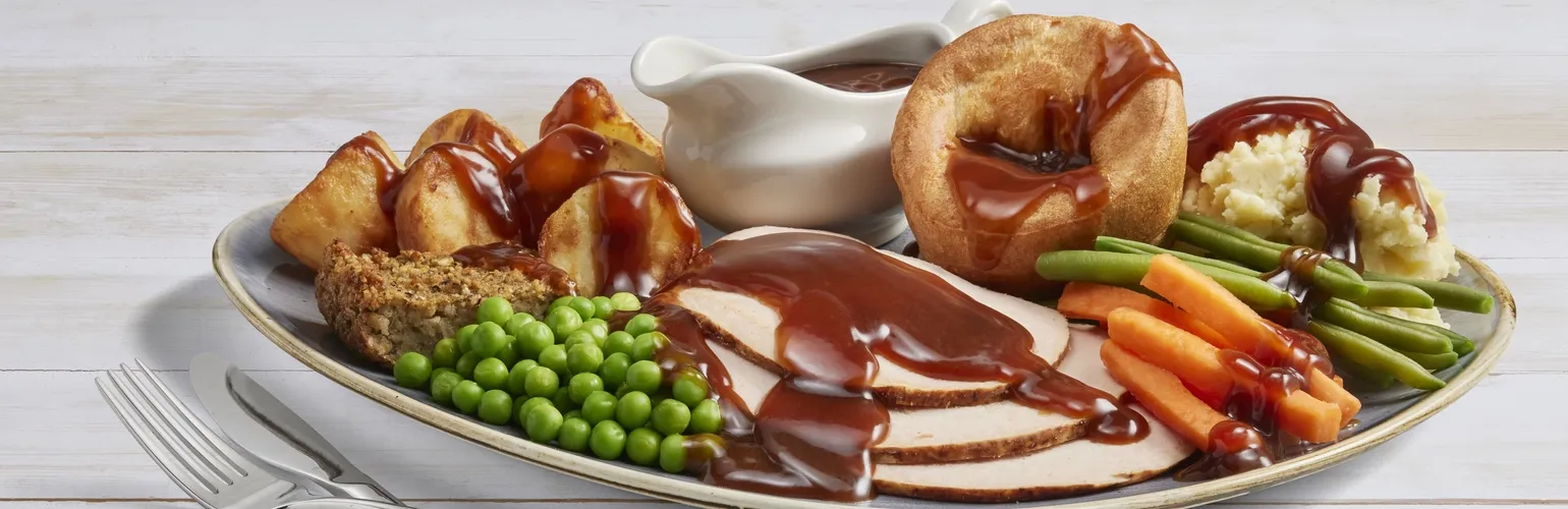 Nothing (and we mean NOTHING) completes a weekend quite like a Sunday roast, and we're pretty proud of ours. Picture this: crispy golden roasties, soft mashed potato, tasty sage & onion stuffing and the fluffiest Yorkshire puddings you've ever laid your eyes on.