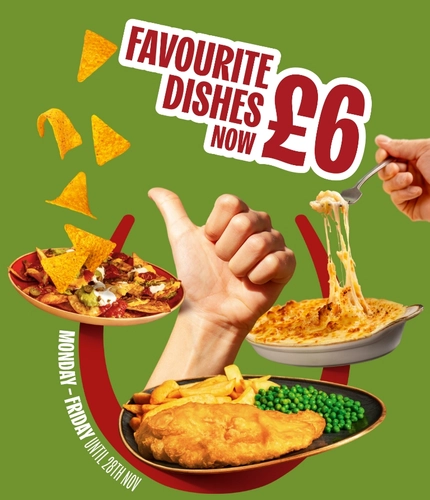 Your £6 favourites are coming back from 5th January until 30th January,  giving you every excuse to hit the pub. From midweek dinners and family catch-ups to casual nights out, tuck into classics like Macaroni Cheese, Chicken Tikka Masala, Fish & Chips and Sausage & Mash. All big plates, big flavours, and brilliant value.