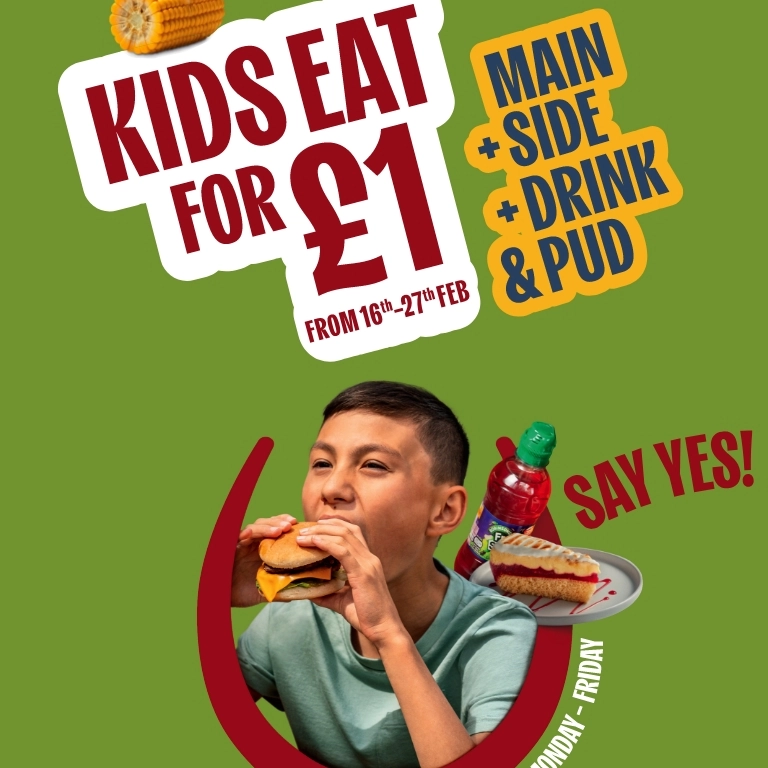 Little tums, big smiles, and zero stress for grown-ups – that’s the magic of our Kids Eat for a £1 offer! Whether it’s breakfast, lunch, or dinner, you can treat your mini foodies to a small meal, drink, pud, and a drink for just £1 when you purchase an Adults Main Meal! Or, if you've got big little ones, you can upgrade to a large meal deal for £1.50.